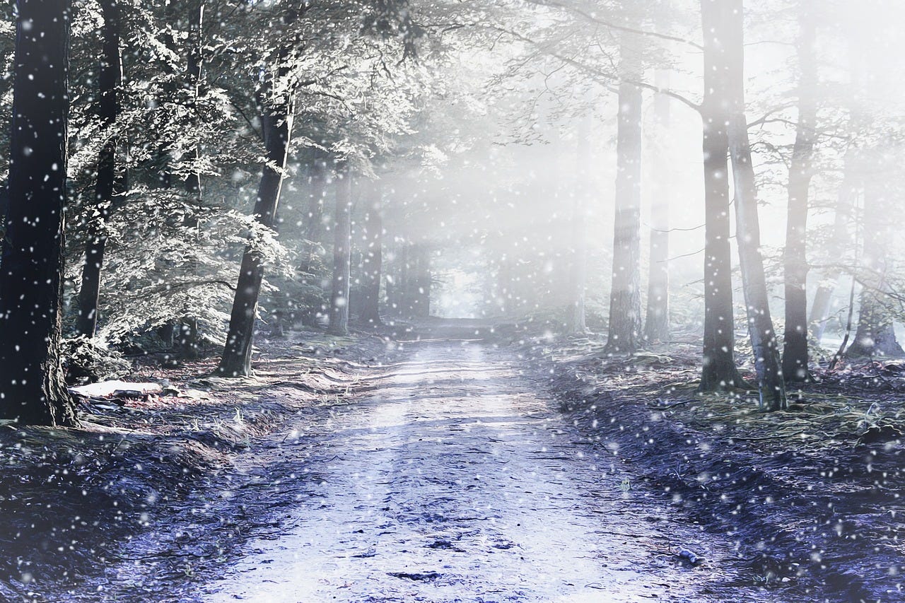 Each year, as Christmas approached, the old woman sharpened an axe and went into the forest and chopped down the most perfect tree she could find and she dragged it behind her through the snow to the cottage. Not a small tree either but a tree so big she could barely pull it and it seemed impossible that it would ever fit through the door or stand upright in the living room, but somehow she always managed to get it in and up and it made the whole house smell of pine needles.